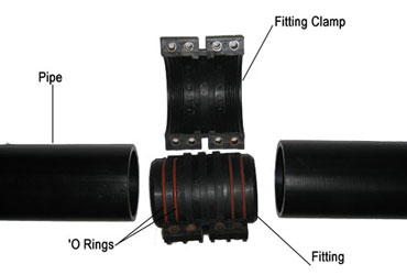 The sealing is on ID of pipe. When the allen bolts are tightened, the pipe gets compressed by hte clamp. This leads to compression of 'O' rings leading to positive sealing. The clamp holds the join postions.